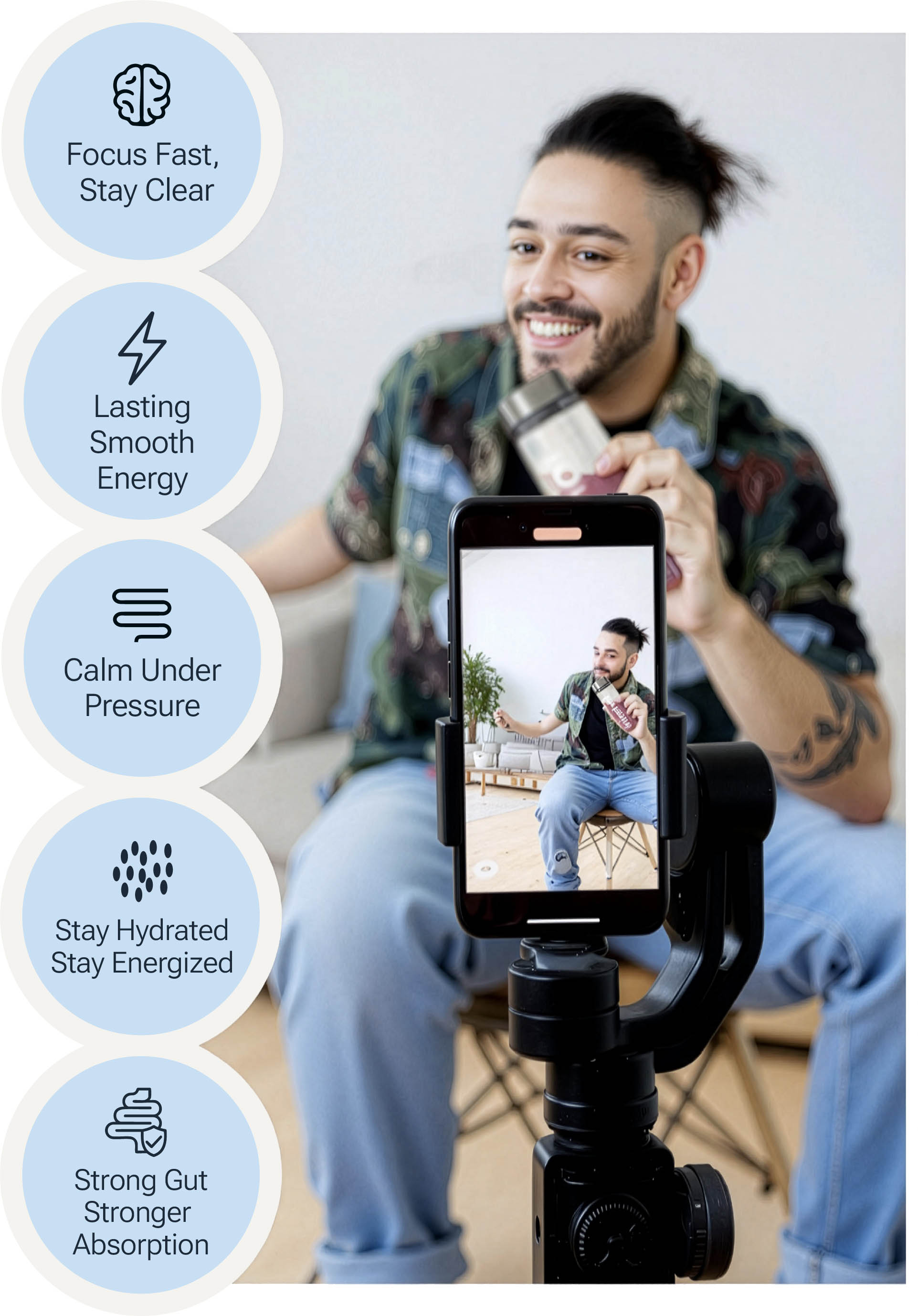 It delivers what most products don’t: a complete productivity solution — focus, energy, stress relief, and hydration — all in one refreshing, once-daily drink. No stacking pills. No mid-day crashes. Just premium nootropics, adaptogens, electrolytes, and smooth extended release lasting energy that helps you get in the zone and win the day.